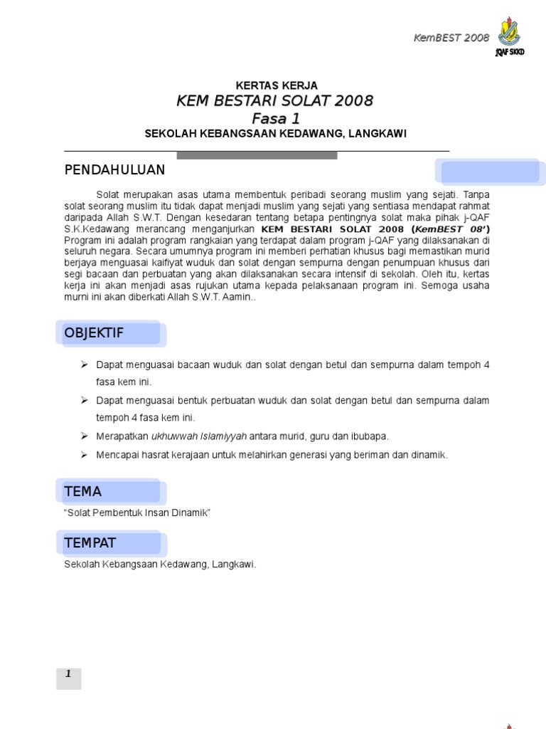 Kertas Kerja Kem Bestari Solat Pdf